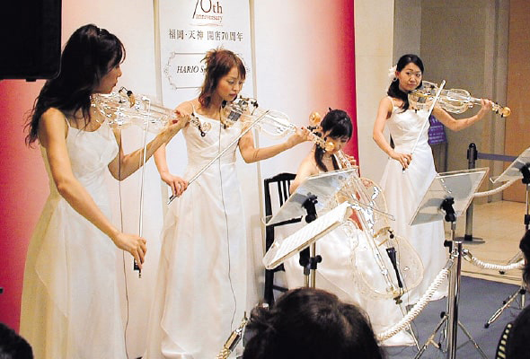 また、2004年には「ガラスのチェロ」、2007年には、手吹きガラスによる世界初・世界最大のガラス楽器