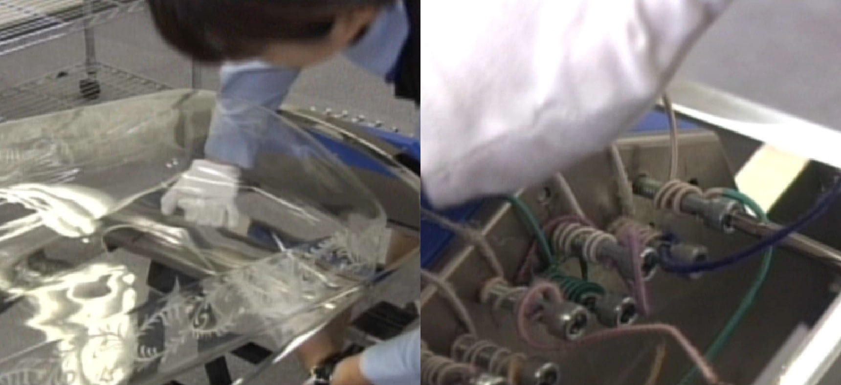 「ガラスのチェロ」の基本工程はバイオリンと同じですが、大きさが比べ物にならないため、製作段階で大変な苦労がありました。まず40体余りを成型し、試行錯誤を重ね、ようやく1体の完成に至りました。耐熱ガラス製で重量は約11Kg(※木製チェロは約3Kg)。
