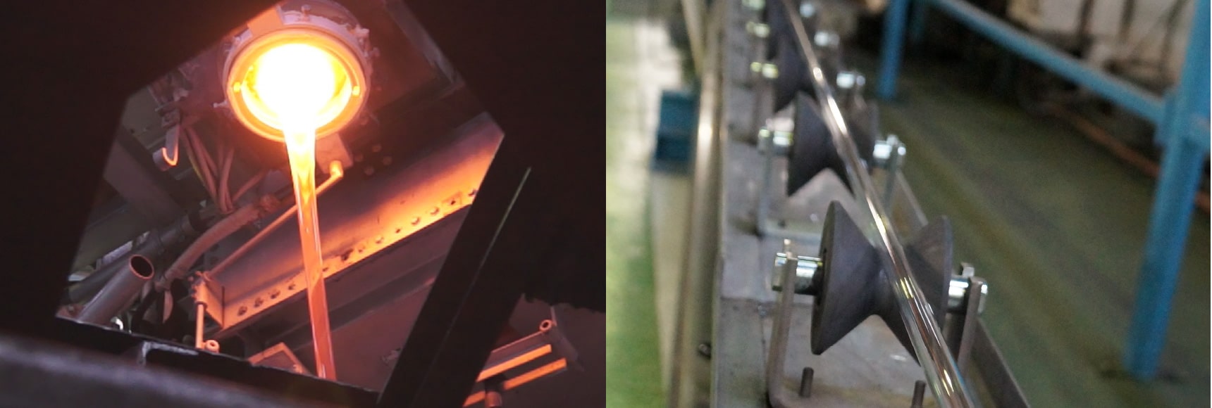 手吹き、かつ停止吹きの技術を持つ熟練の職人が、ステンレス製の吹き竿の先に、窯の中で溶けているガラスを巻き取り徐々に息を吹き込みながら楽器のボディを成形しました。