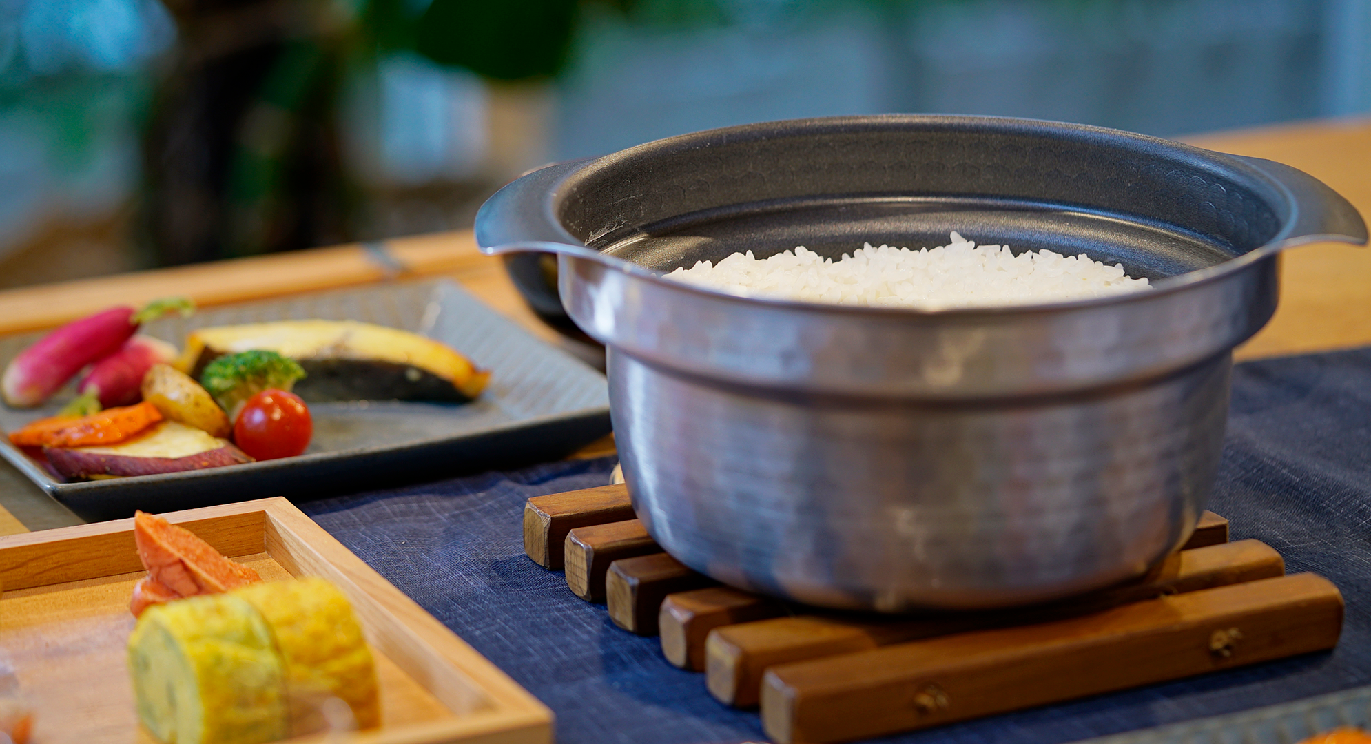 ステンレスとアルミの4層構造の鍋身は熱をまんべんなく伝え、ご飯をふっくら炊き上げます。