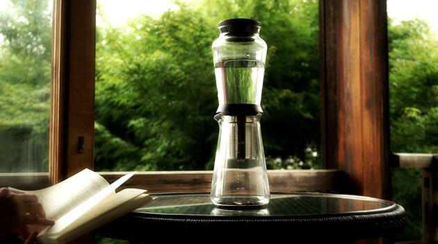 上ボールに水を入れると、点滴パーツの2つのスリットから水が流れて滴下します。スピード調整なしで約1時間前後で落ちきるため、手軽に本格水出しコーヒーをお愉しみいただけます。また、コーヒー以外に水出しのお茶用としてもお使いいただけます。