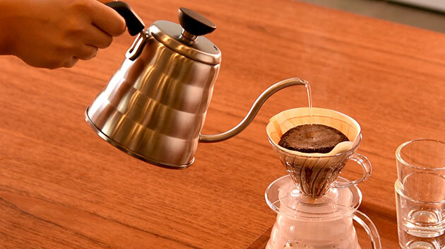 注ぎ口の細いドリップケトルはお湯の量やスピードがコントロールしやすく、おいしいコーヒーを淹れるのに役立ちます。