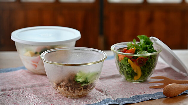 レンジフタ付き耐熱ガラス製ボウル3個セット
