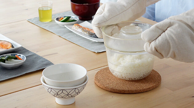 ※「HARIO Glass®」は天然素材を用いて、国内工場で生産したHARIOの耐熱ガラスのことです。※炊飯時の音を軽減する消音リング付き。