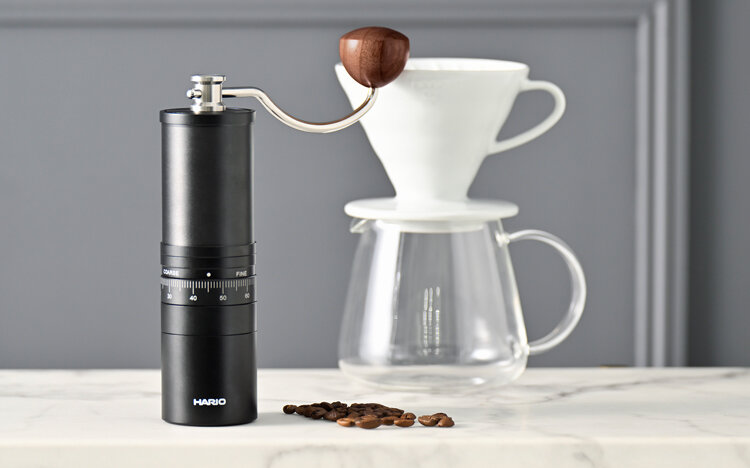 ステンレス臼のコーヒーグラインダー。