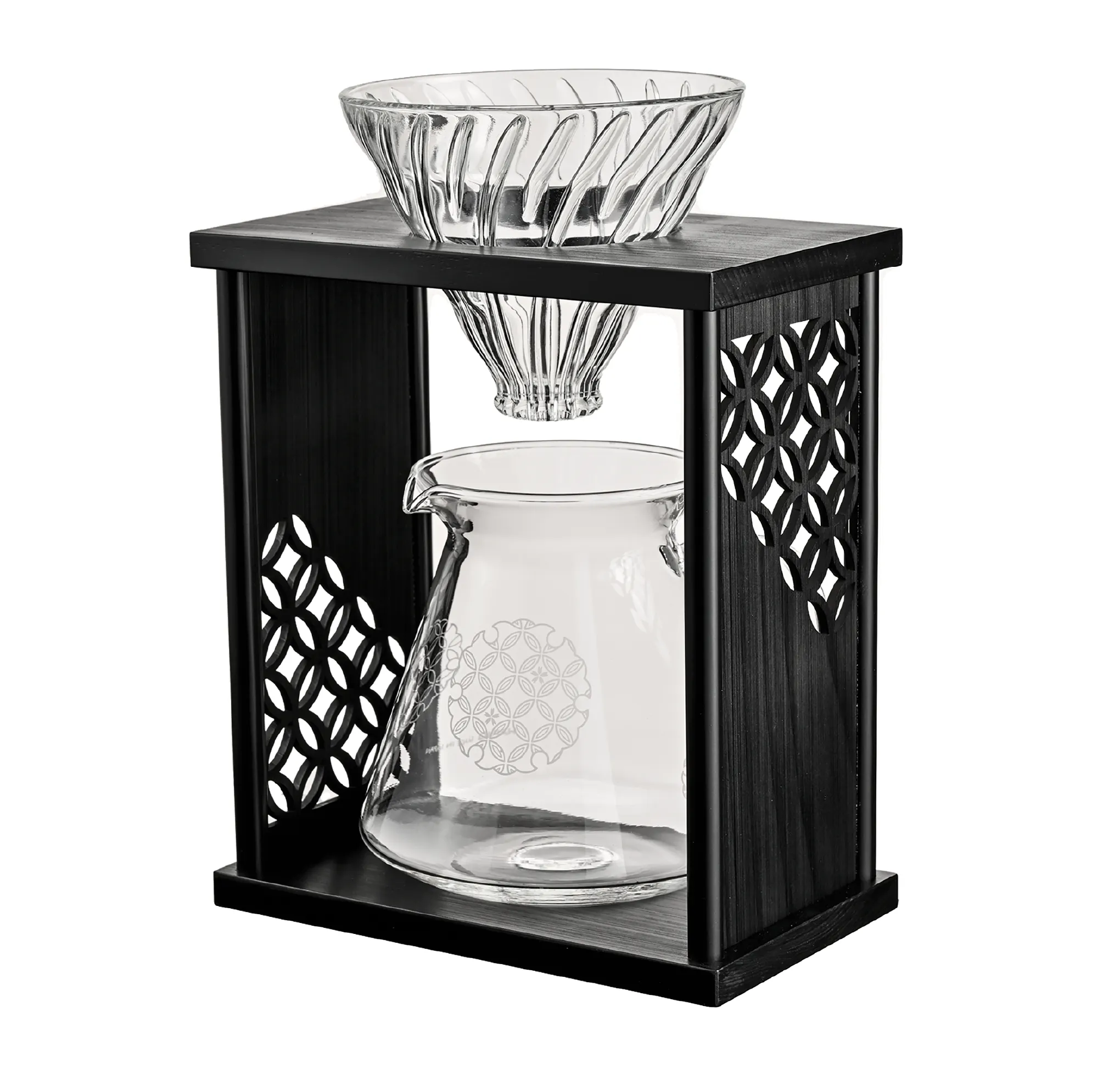 円が連なる美しい幾何学模様には、人と人とのご縁や、円満・調和といった意味が込められています。縁起の良い文様とガラスの透明感が織りなす上質な佇まいは、日々のコーヒーシーンに静かな華やぎをもたらします。