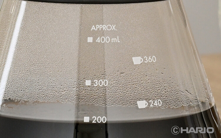 サーバーの240mL/360mLの目安メモリで水を計ってから、