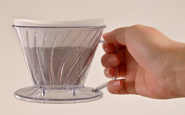 スパイラルリブと小さな二つ穴の仕様にして、コーヒーが膨らみやすく味の再現性を高めました。
