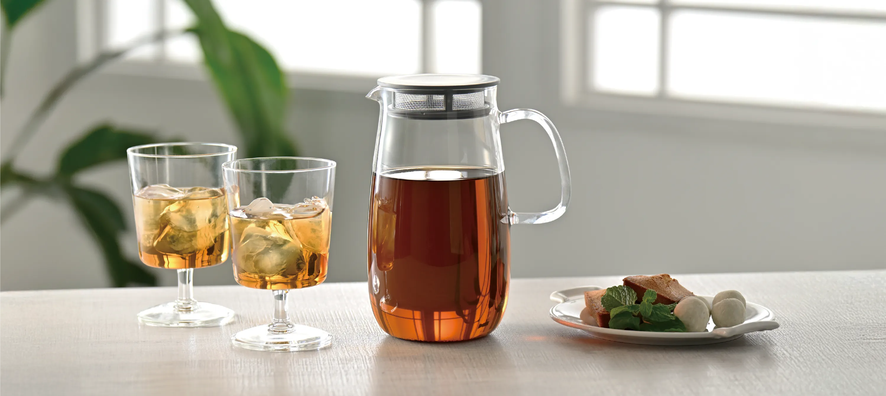 茶こし付きフタで、緑茶やハーブティーのお湯出し・水出しにも対応。