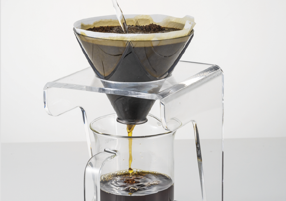 コーヒー抽出時の「蒸らし」なしで、1回お湯を注ぐだけで、抽出できるドリッパー。お湯を注ぐと内側のスターライン(星形)の溝をつたって、ゆっくりとコーヒーが抽出されます。