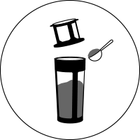 製品についている目盛まで水を注いでコーヒー粉に水をなじませる