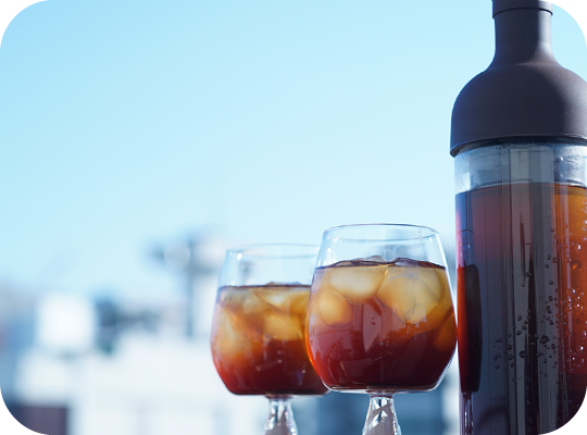 コーヒー粉を水につけて抽出しする方法。すっきりとした甘味が特徴。夜に作って冷蔵庫に入れておけば、朝には本格的な水出しコーヒーが楽しめます。