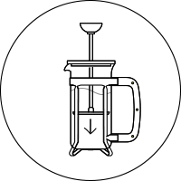 お湯を注ぎ、コーヒーの対流が収まったら(約2分)フィルターを押し下げる