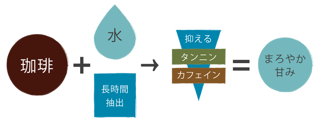 高温による酸化を防ぎ、苦みや渋みのもとになる「タンニン」や「カフェイン」が溶け出しにくいので、苦味雑味が抑えられた、まろやかな味わいとなります。 口あたりがなめらかで甘みがあり、コーヒー豆本来の味や香りを楽しめます。