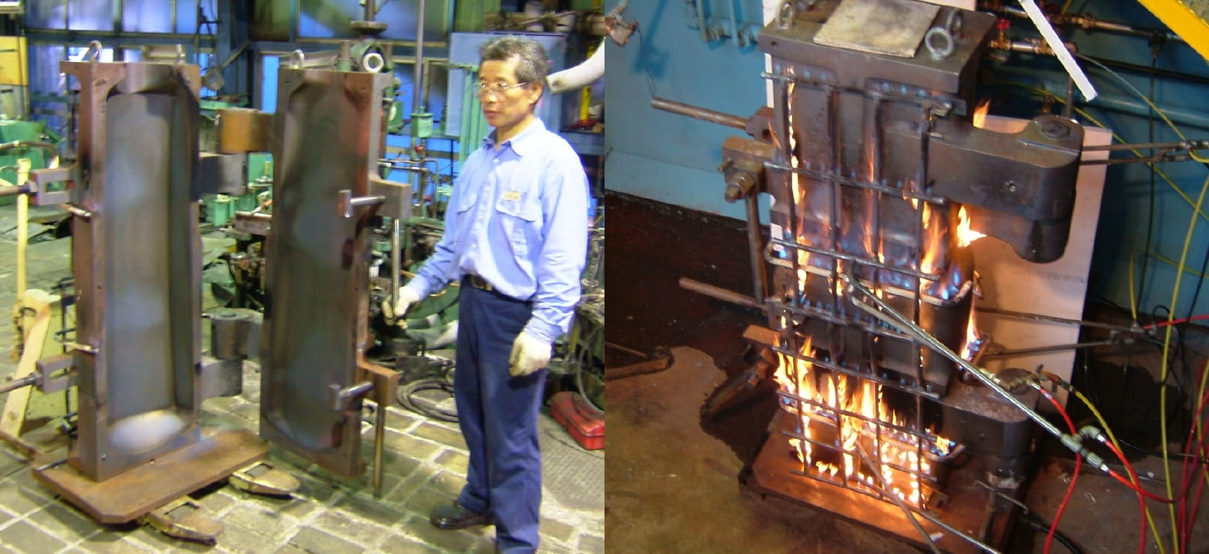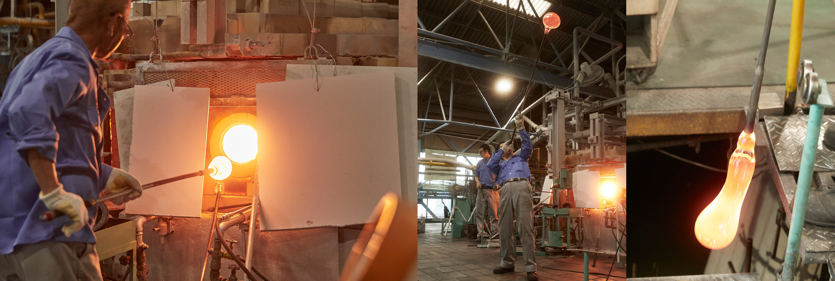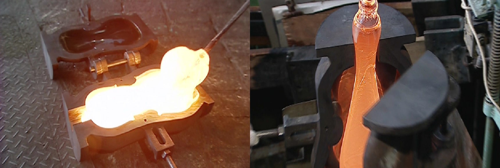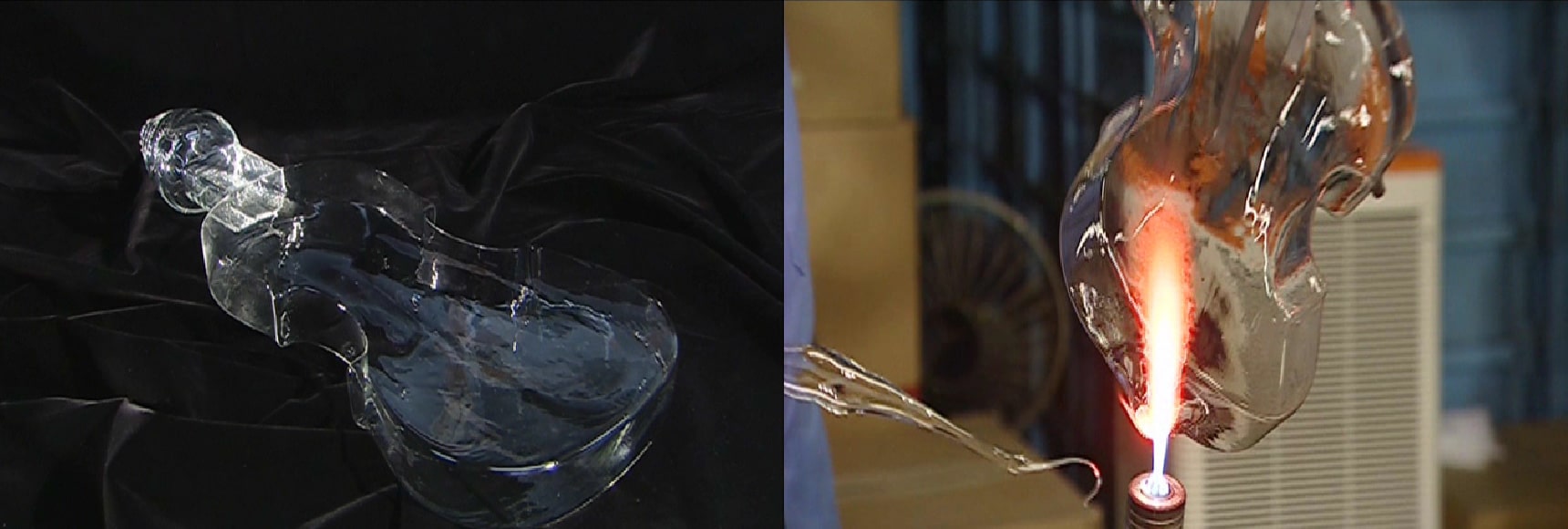 手吹きでかつ停止吹きの技術を持つ熟練の職人が試行錯誤した後、ボディーの再現に成功。