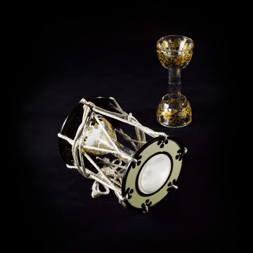 2010年にはガラスの和太鼓、小鼓、大鼓、笛が完成し、日本の伝統楽器を使ったお囃子を演奏することができました。中でも、大鼓・小鼓はガラス製の胴部分と左右に貼る革の相性で音質が大きく異なるため、いくつかの胴部分を製作し、最も良質な音を出せる胴を選びぬきました。こだわりの音質とガラスの和楽器の美しさをご堪能下さい。