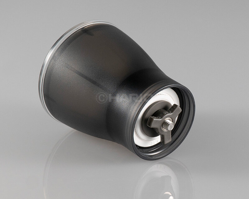セラミック製の臼を使用しているため、摩擦熱が発生しにくく、熱によるコーヒー粉へのダメージを防ぎます。ハンドルをはずすとコンパクトに納まるので、持ち運びに便利です。