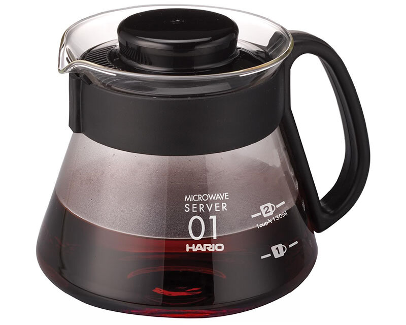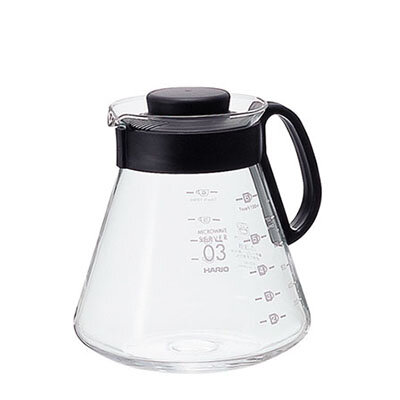 好みに合わせて抽出できる目安目盛とカップ表示付き。フタをしたまま電子レンジOK。サーバーにフタをセットしたままV60ドリッパーをのせられるため、収納時にとても便利です。