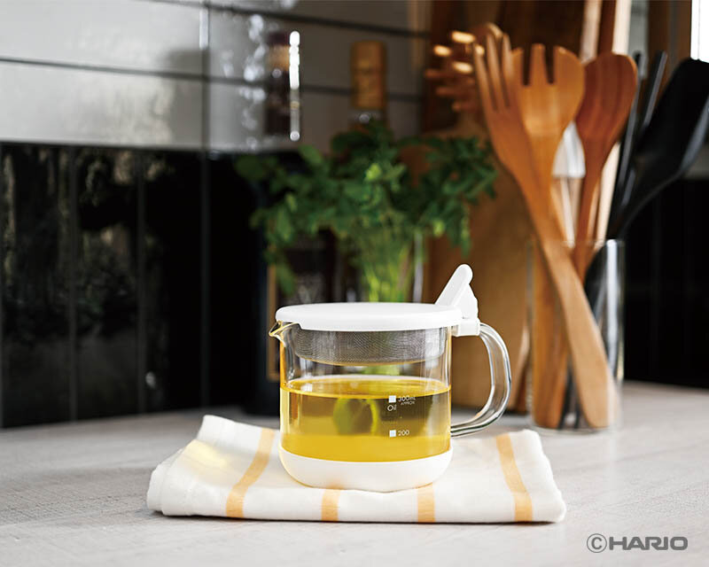 耐熱ガラス製でコンパクトサイズ。キッチンに置きやすく、油の状態も目で見てわかります。細かい汚れを漉して油を再利用でき、経済的でエコな製品です。