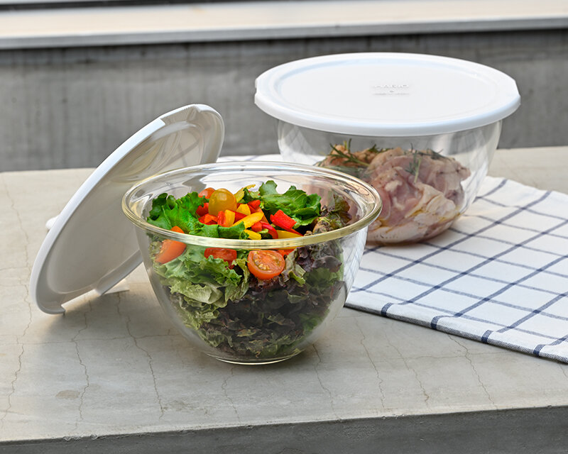 電子レンジ調理時のラップ代わりに、冷蔵庫での保存に便利な耐熱ガラスボウル用のフタです。(MXP用)