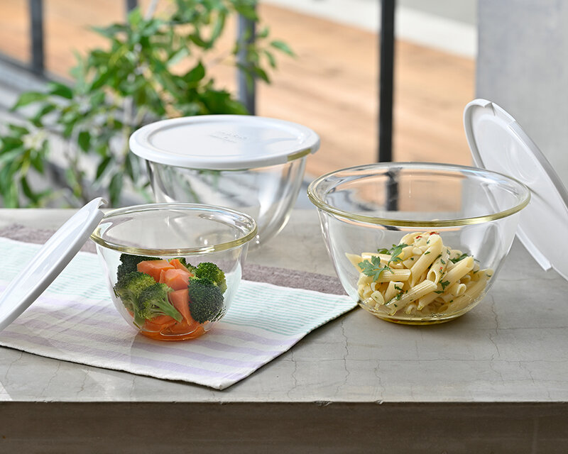 レンジフタ付き耐熱ガラス製ボウル2個セット