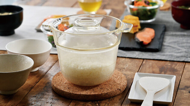 ※「HARIO Glass®」は天然素材を用いて、国内工場で生産したHARIOの耐熱ガラスのことです。※炊飯時の音を軽減する消音リング付き。