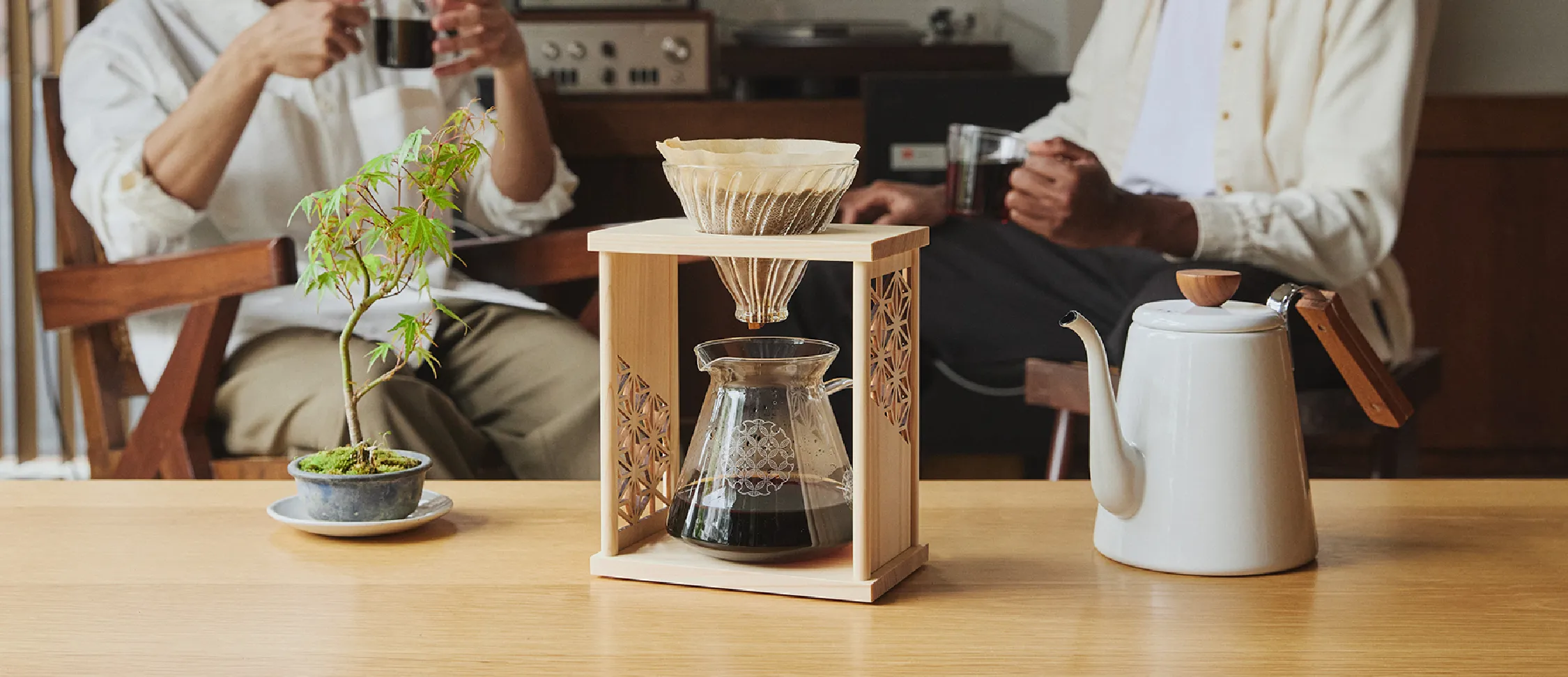 日本の伝統模様「麻の葉」をあしらったコーヒードリップスタンド。無病息災などの願いが込められた縁起の良いデザインで、日々のコーヒータイムに和の趣と温もりを添えます。