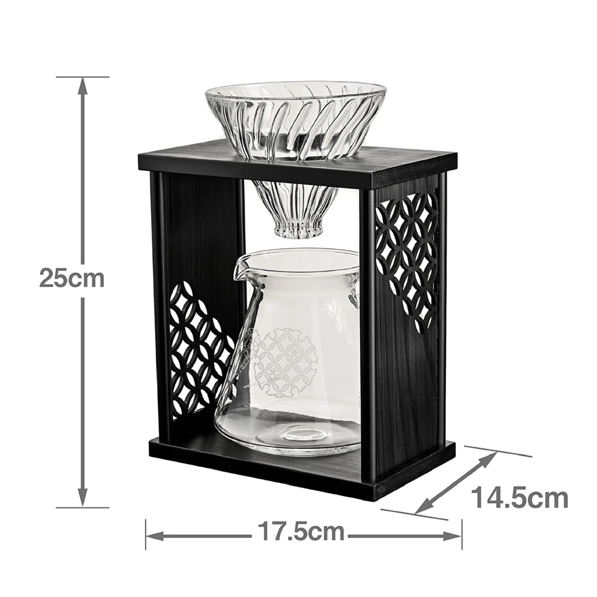 円が連なる美しい幾何学模様には、人と人とのご縁や、円満・調和といった意味が込められています。縁起の良い文様とガラスの透明感が織りなす上質な佇まいは、日々のコーヒーシーンに静かな華やぎをもたらします。