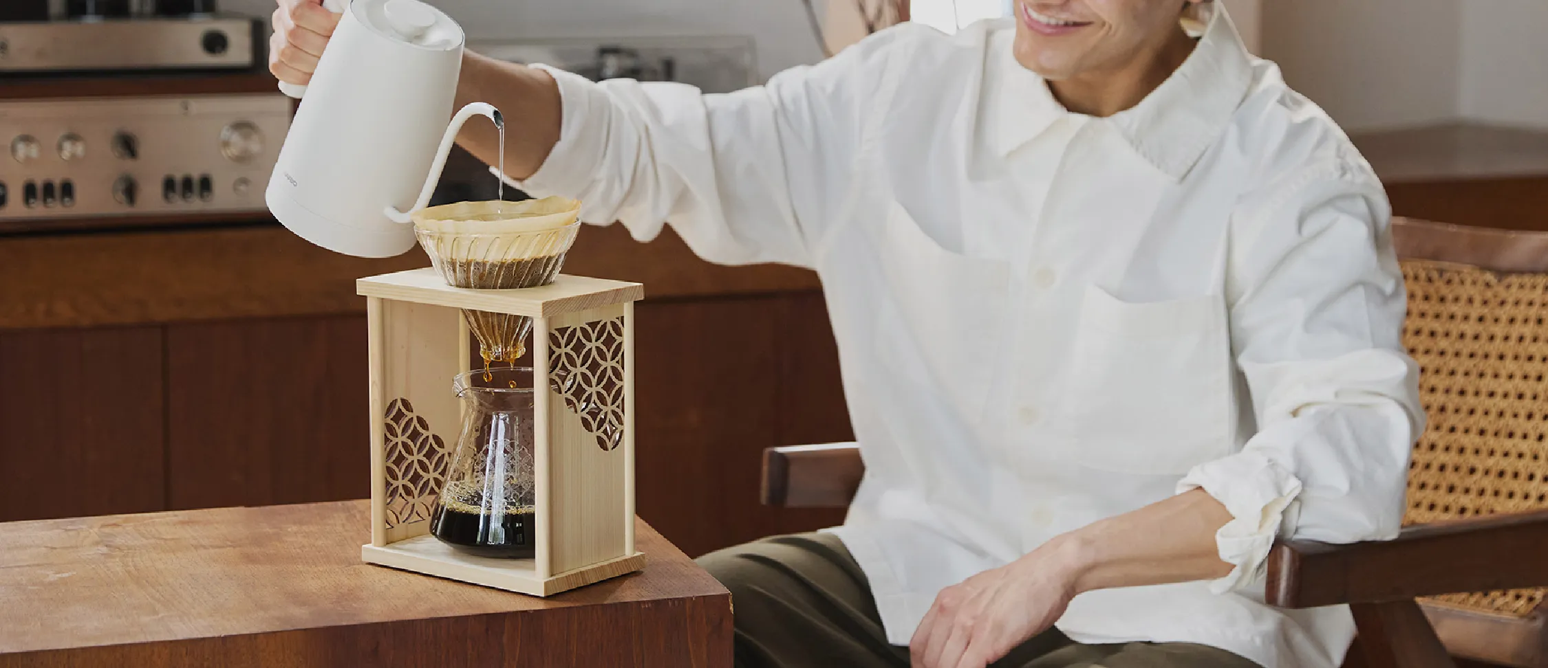 円が連なる美しい幾何学模様には、人と人とのご縁や、円満・調和といった意味が込められています。縁起の良い文様とガラスの透明感が織りなす上質な佇まいは、日々のコーヒーシーンに静かな華やぎをもたらします。