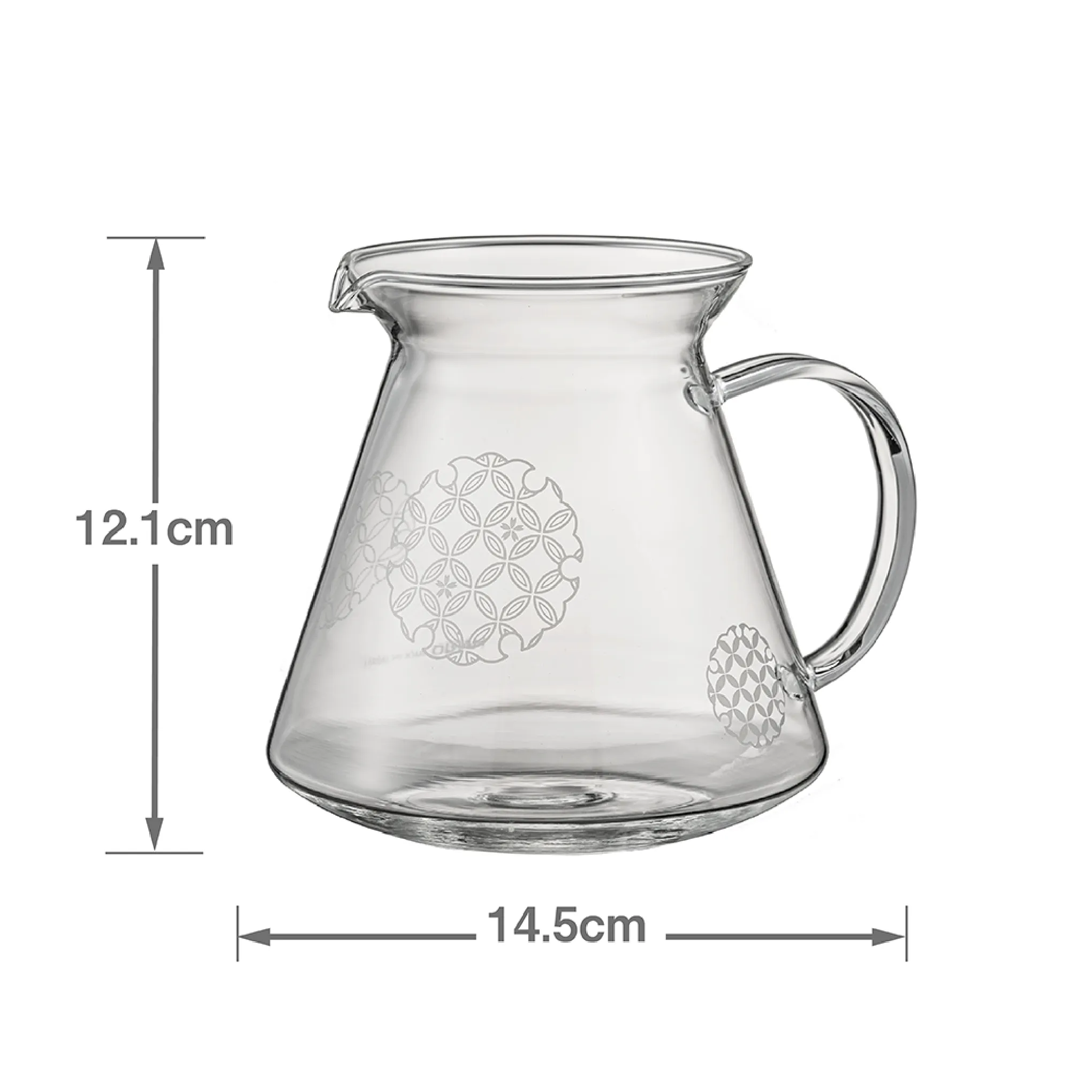 上品な七宝柄のデザインは、サーバーに注がれたコーヒーの色味を引き立て、和のぬくもりと落ち着きを感じさせてくれます。日常のコーヒータイムを、心和らぐ特別な時間に演出してくれる一品です。
