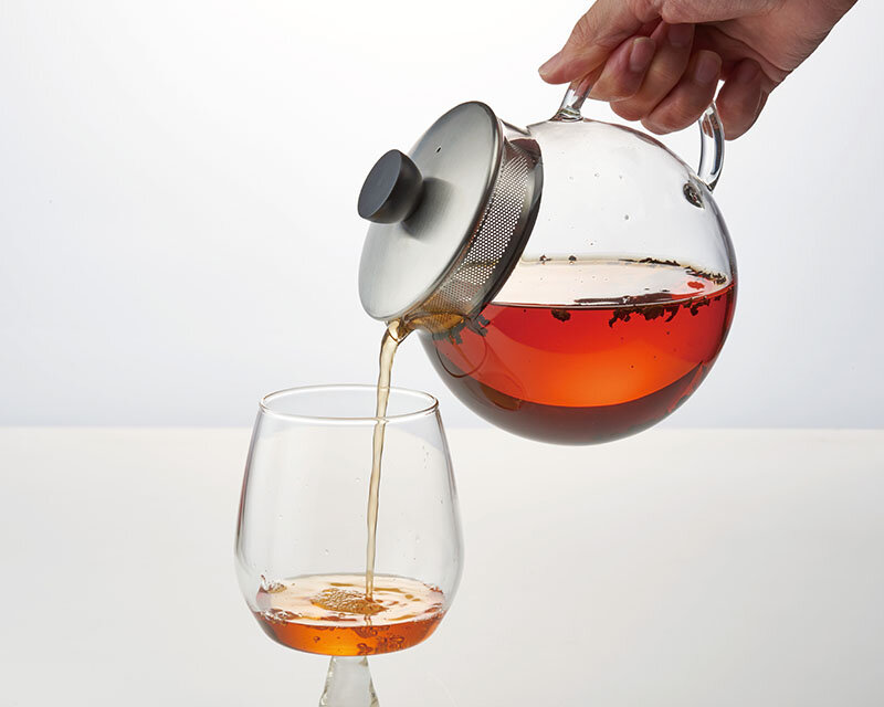 フタとフィルターが一体となっているのでそのまま注げます。シンプルかつ機能的なティーポットです。